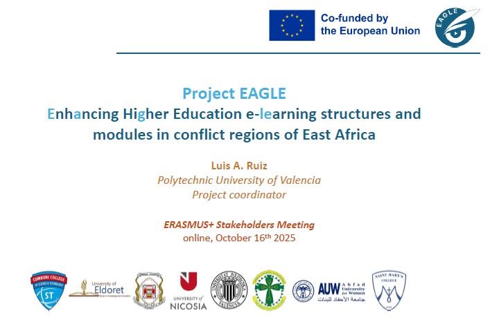 On October 16, 2025, Prof. Luis Ángel Ruiz from the Universitat Politècnica de València (UPV) and coordinator of the Erasmus+ EAGLE Project, took part as a speaker in the “Erasmus+ Stakeholder Meeting – Fostering Peace through Inclusive and Sustainable Exchanges”, organized by the European Commission and the Erasmus+ National Focal Points Network (ENFP).